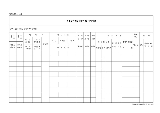 제8호 과세전적부심사청구 및 처리대장