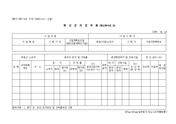 제97-4호 청산금지급자료(재건축사업 등)(2000.12.11. 신설)