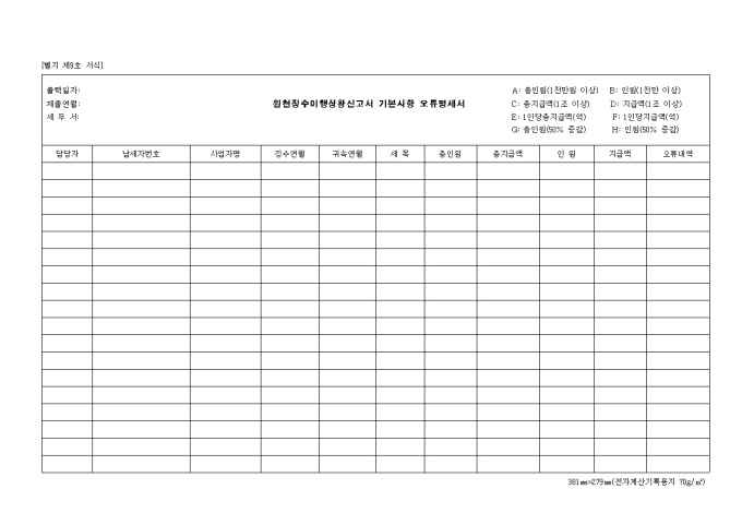 9,000원/월제9호 원천징수이행상황신고서 기본사항오류명세서