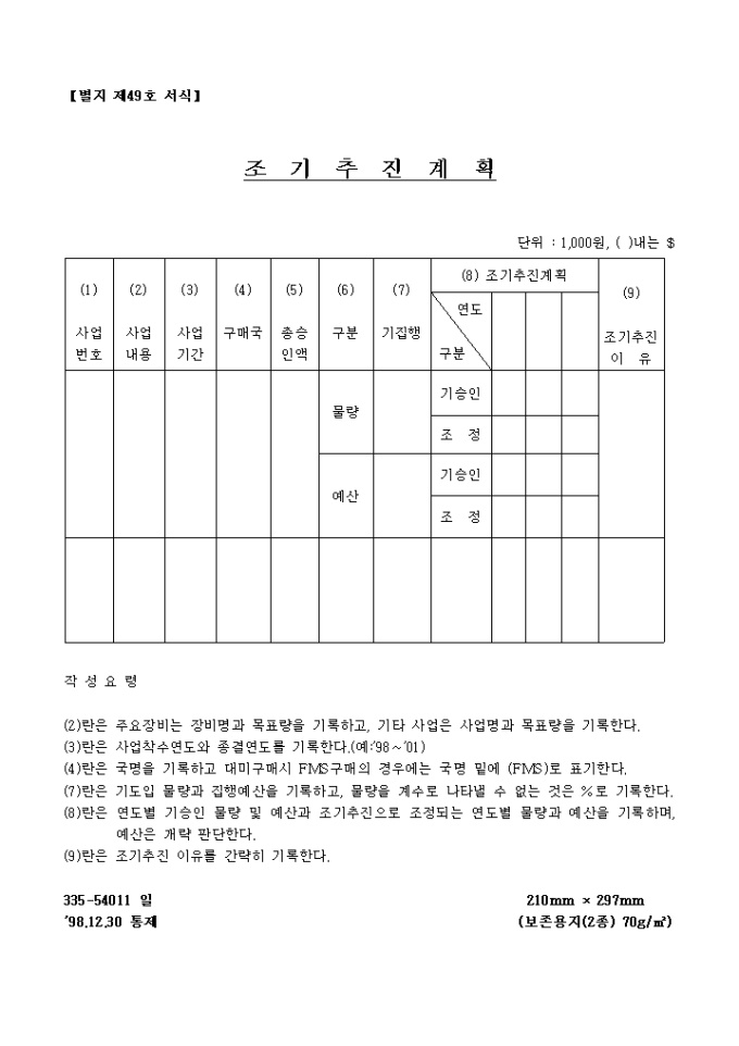조기추진 계획(별지 제49호 서식)