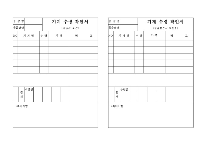 9,000원/월공장에서 물건을 수령할때 사용하는 양식입니다. 공급자와 공급받는자가 함께 보관하는 양식입니다.