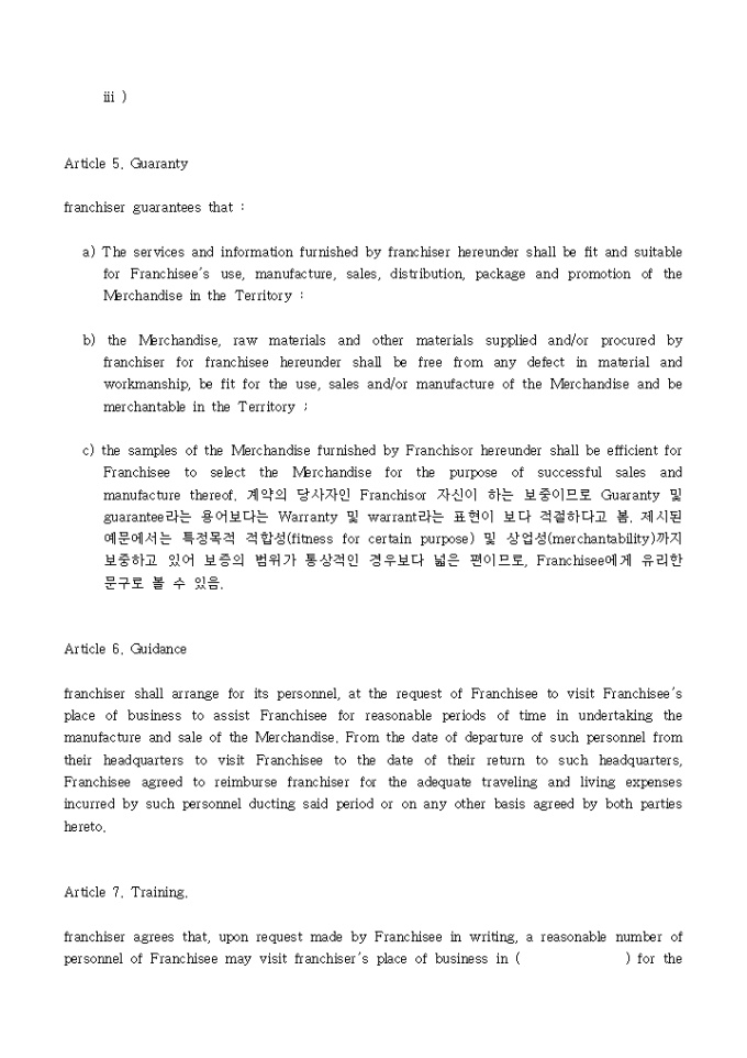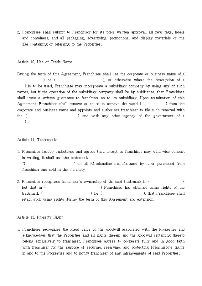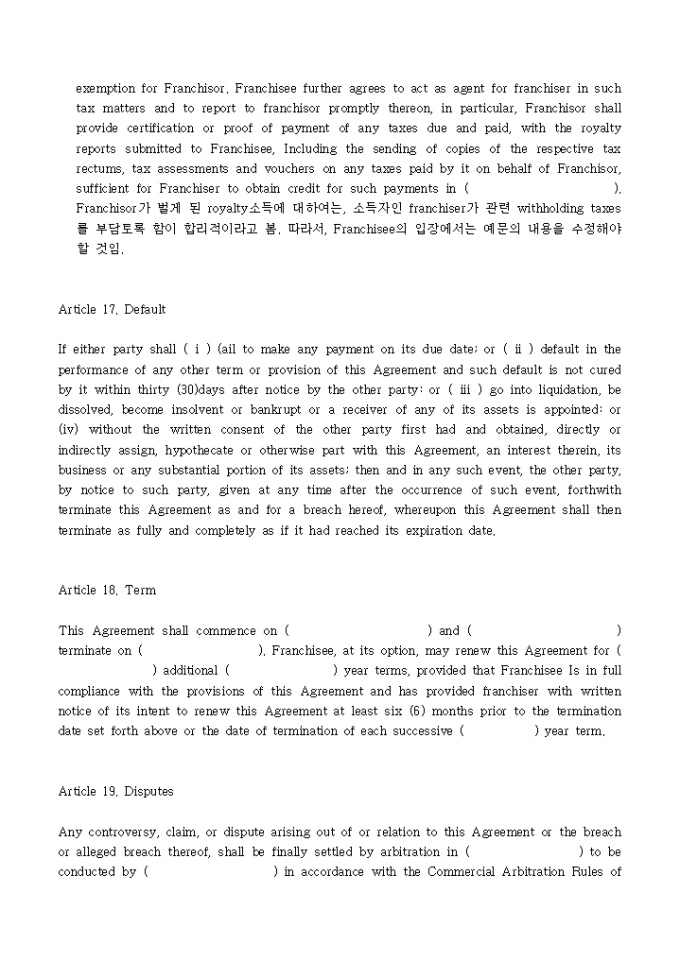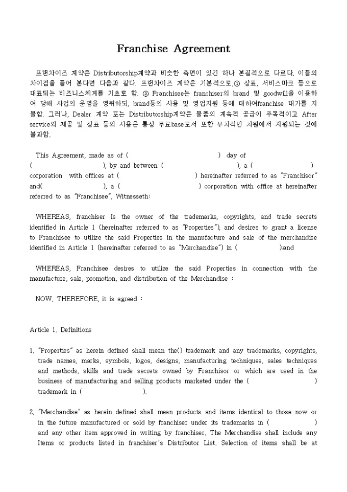 Franchise Agreement 양식입니다.