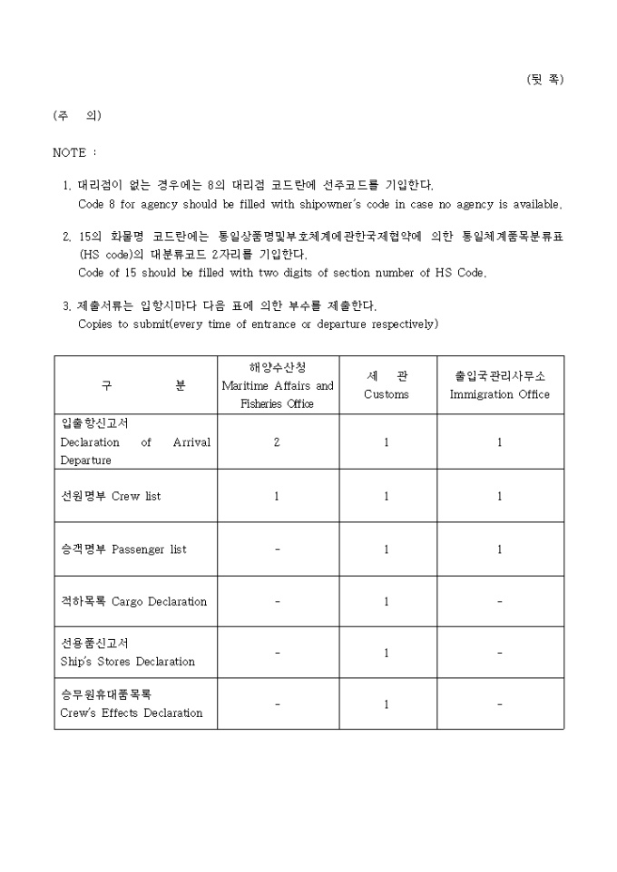 9,000원/월외항선(입항,출항) 신고서(Declaration of Arrival or Departure) 양식입니다.