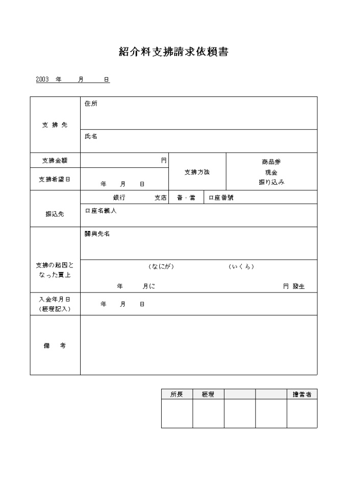 9,000원/월지불자 주소, 성명, 지불금액, 지불희망일, 지불방법 등을 청구하는 소개료지불청구의뢰서(일어) 양식입니다.
