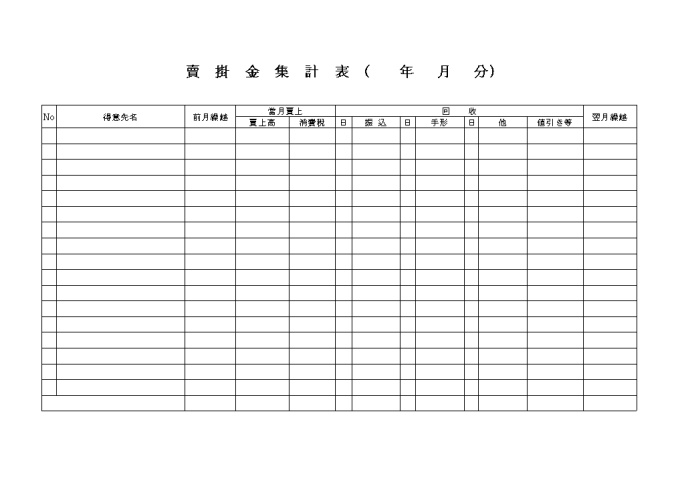 득의선명, 전월조월, 당월매상, 회수 등을 기록하여 집계하는 외상판매대금집계표(일어) 양식입니다.
