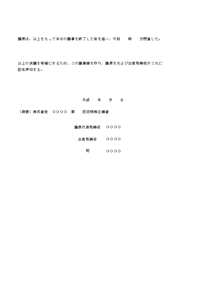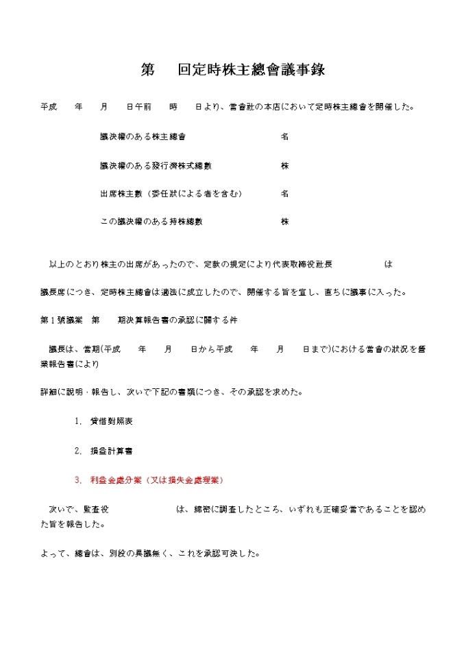 의사록 형식(주주총회)1(일어)
