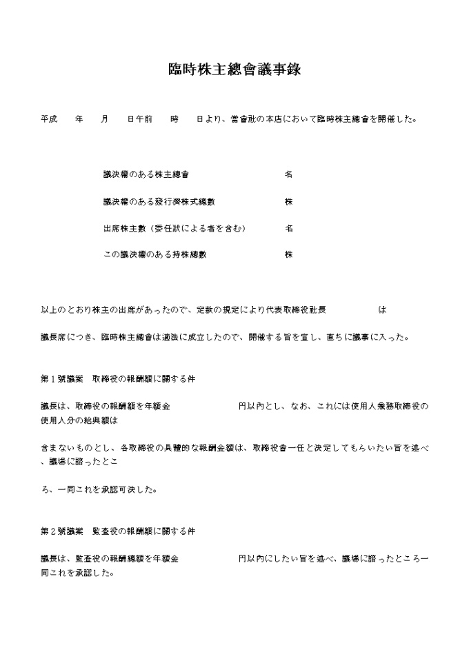 議決權のある株主總會 名 議決權のある發行濟株式總數 株 出席株主數(委任狀による者を含む) 名 この議決權のある持株總數 株 의사록형식(주주총회)2(일어) 양식입니다.