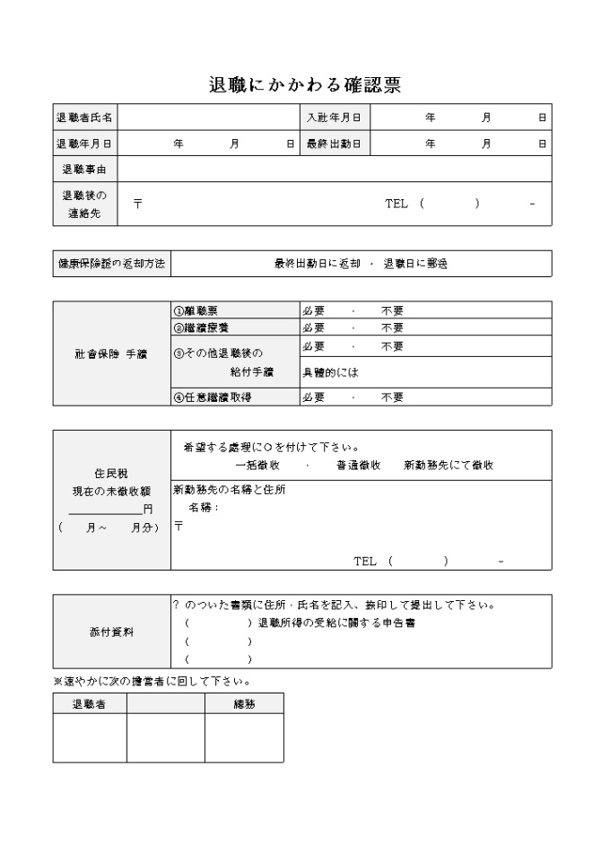 퇴직에 관한확인표(일어)