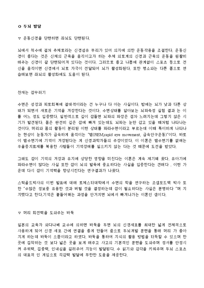 뇌에서 척수에 걸쳐 추체로라는 신경섬유 무리가 있어 의지에 의한 운동작용을 조절한다. 운동신경이 좋다는 것은 신체의 근육을 움직이고자 하는 추체 외로계의 신경과 근육의 운동을 원활히 해주는 신경이 잘 단련되어져 있다는 것이다. 그러므로......