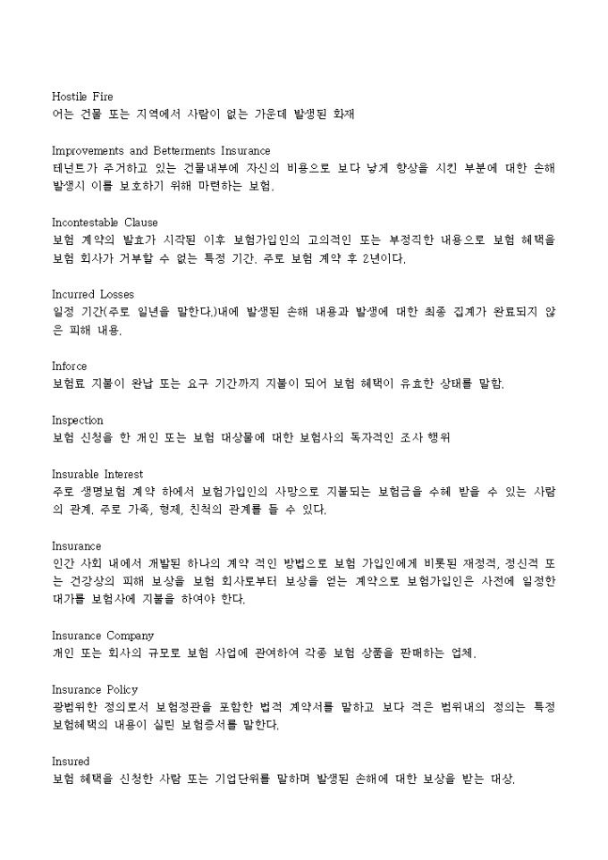 화재에 대한 사건사고들(보험 용어 해설) 양식입니다.