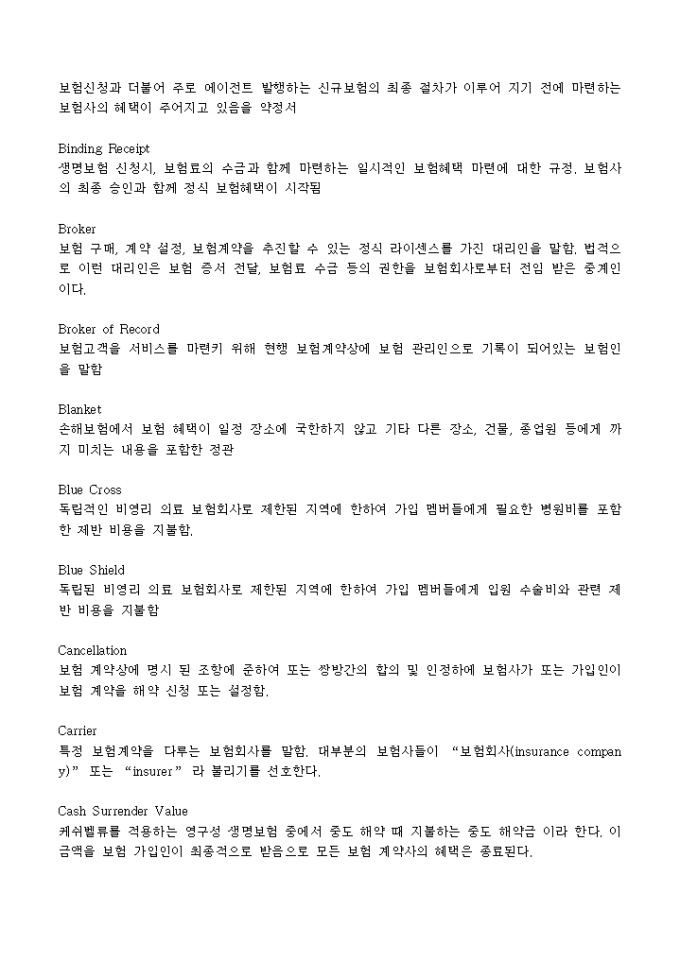 9,000원/월보험 용어 해설 (1)