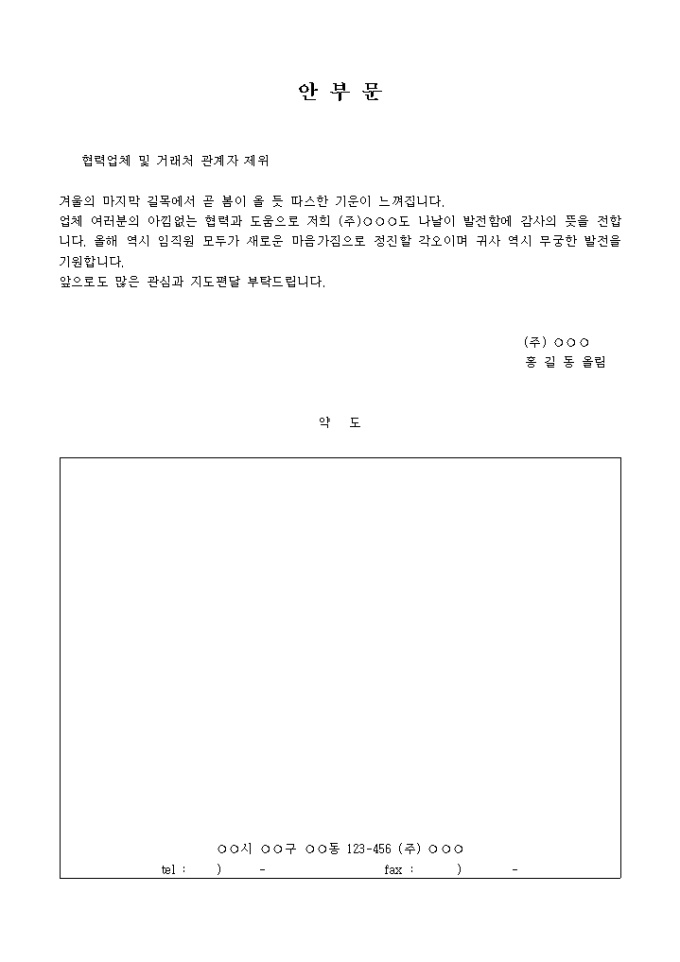 9,000원/월회사에서 업체에게 발송하는 안부문 양식입니다.
