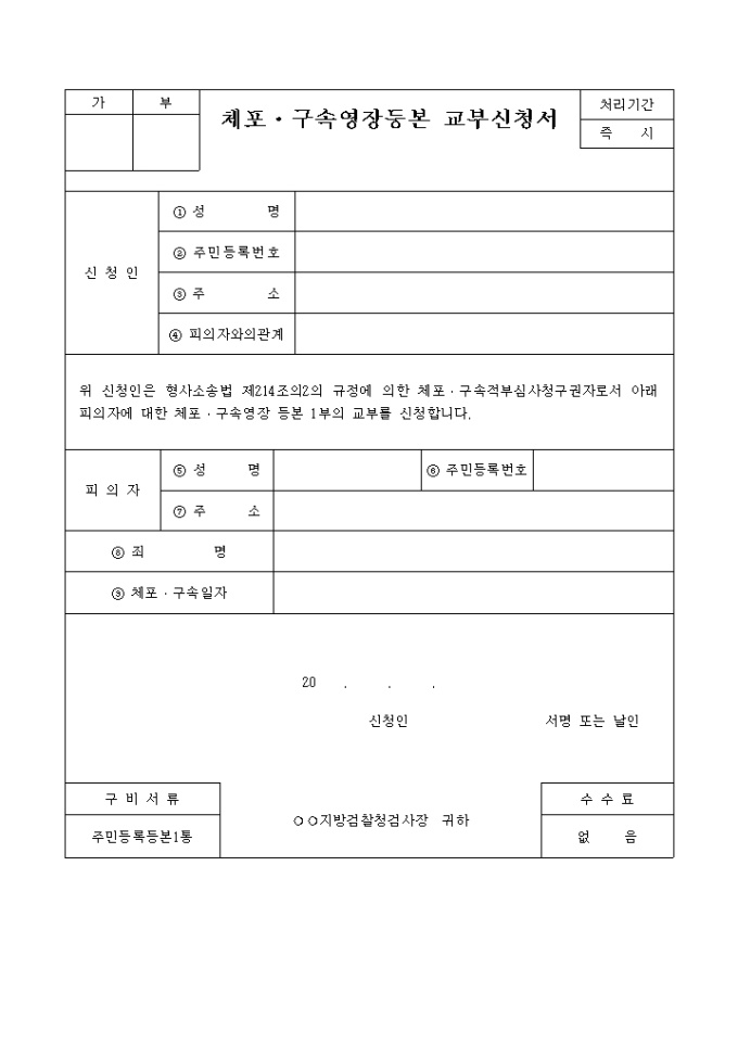 체포·구속영장등본 교부신청서
