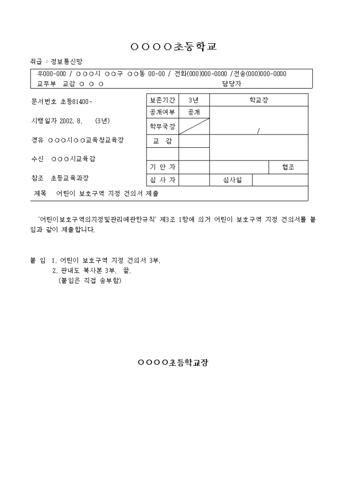 9,000원/월시청에 어린이 보호구역 지정 건의서 제출하는 어린이보호구역지정건의공문 양식입니다.