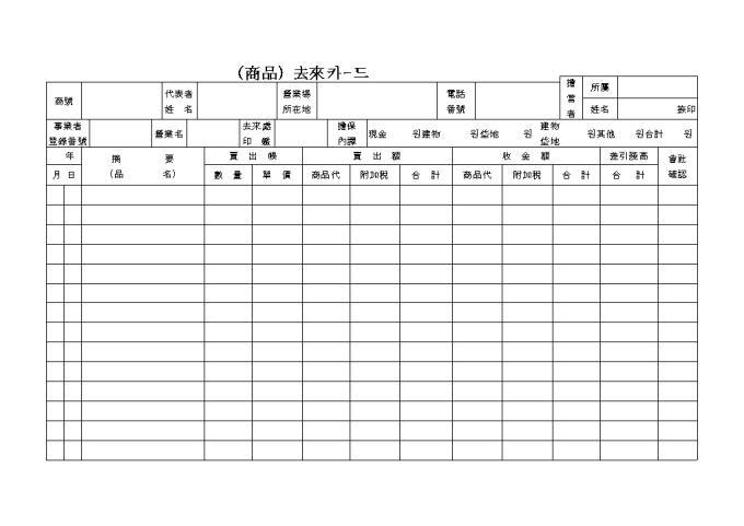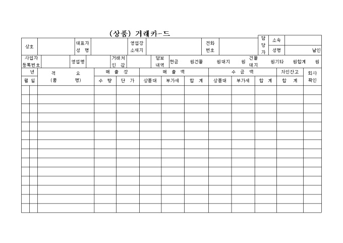 한글, 한문으로 구성된 상품거래카드 양식입니다.