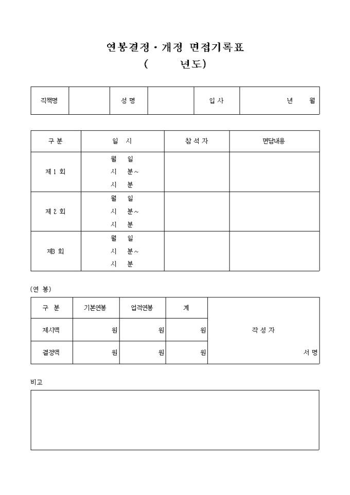 9,000원/월연봉협상에 있어 개정 및 협상에 대한 내역을 기록하는 양시입니다.