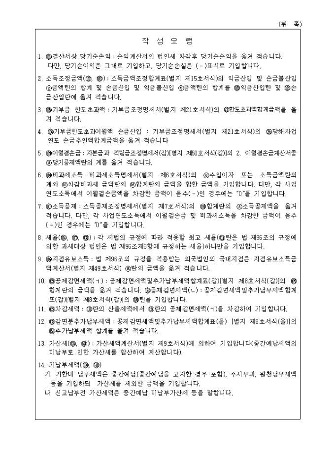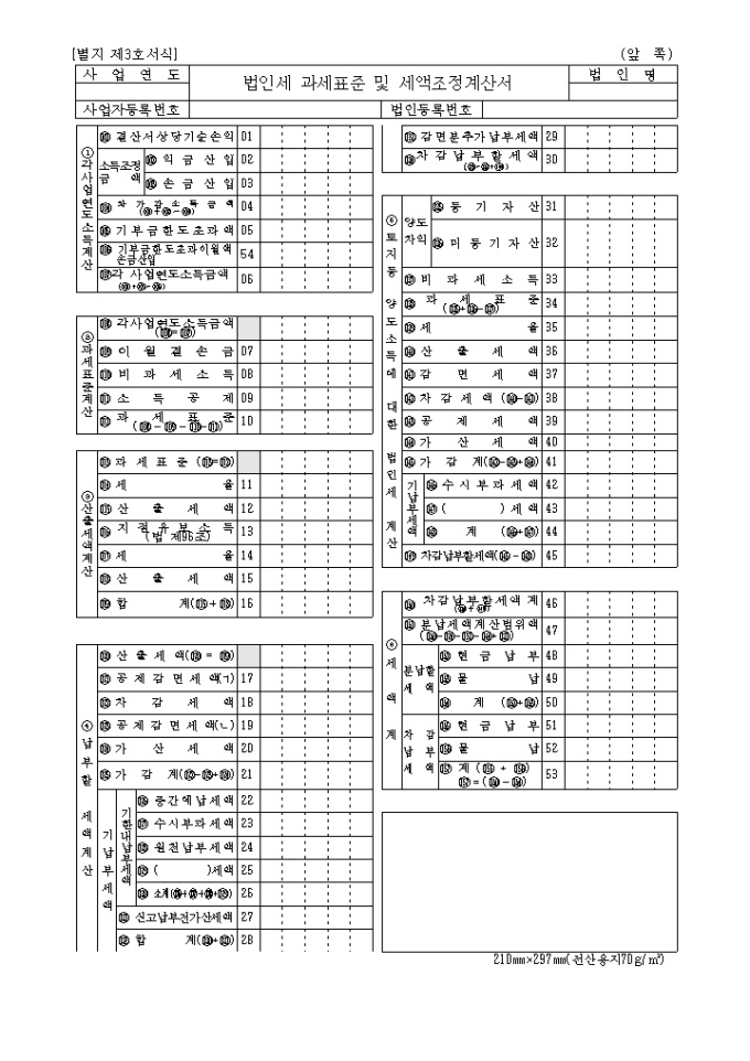 제3호 법인세과세표준 및 세액조정계산서(2004년03월05일 개정)