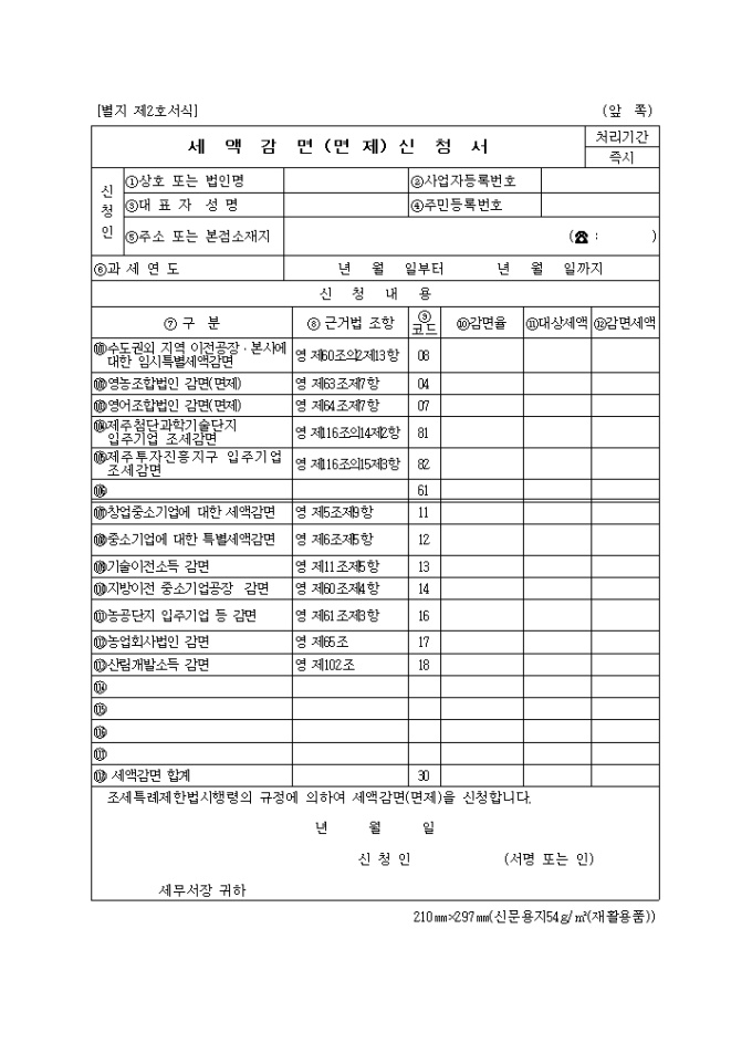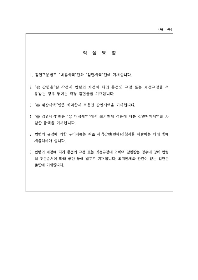 조세특례제한법시행령의 규정에 의하여 세액감면(면제)을 신청할때 사용합니다.