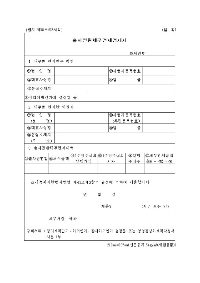제38호의2 출자전환채무면제명세서(2004년03월05일 개정)