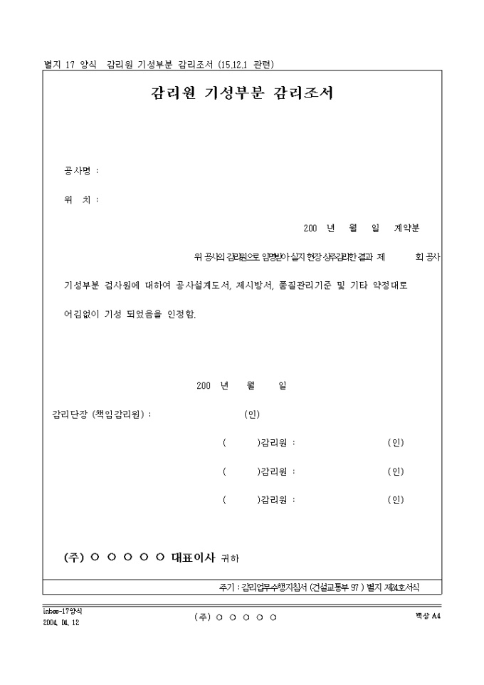 감리원 기성부분 감리조서