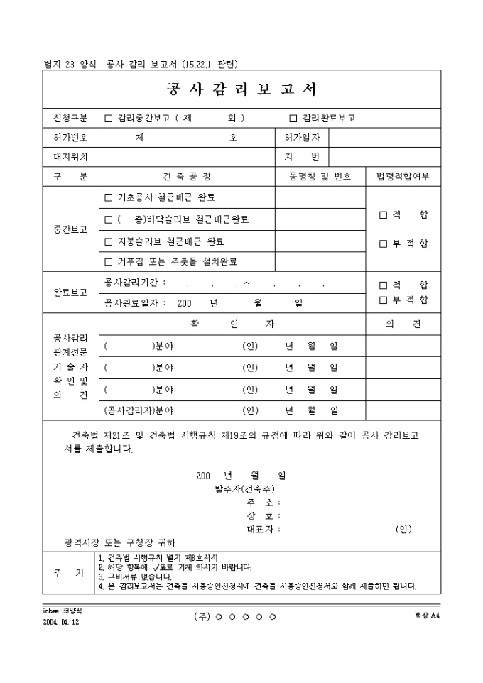 9,000원/월건축법 제21조 및 건축법 시행규칙 제19조의 규정에 따른 공사감리보고서입니다.