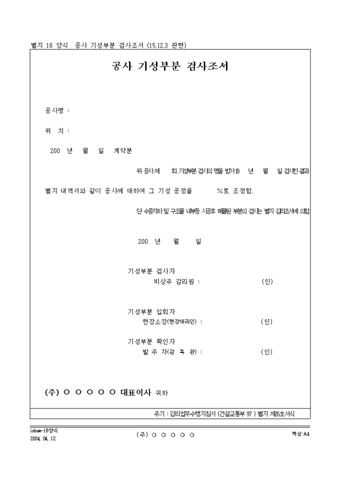 9,000원/월기성부분 검사의 명을 받아 공사의 기성 공정을 조정했다는 내용의 공사 기성부분 검사조서입니다.
