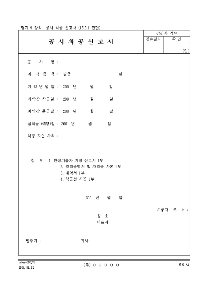공사 착공 신고서