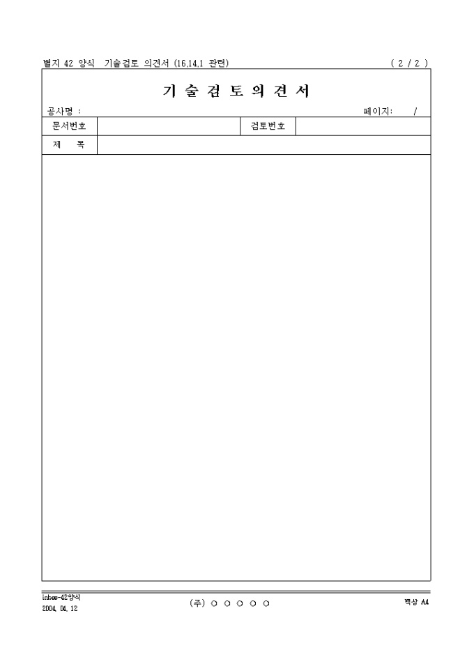 기술 검토의 의견을 기록하는 양식입니다.