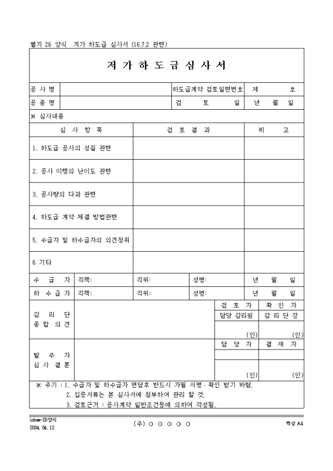 9,000원/월저가 하도급 심사서