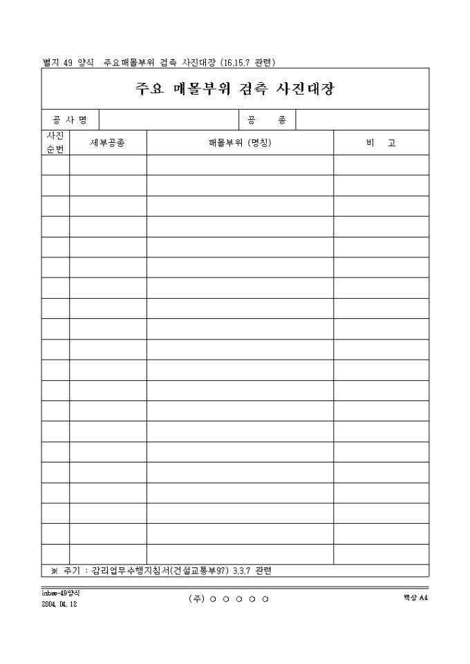 주요매몰부위 검측 사진대장