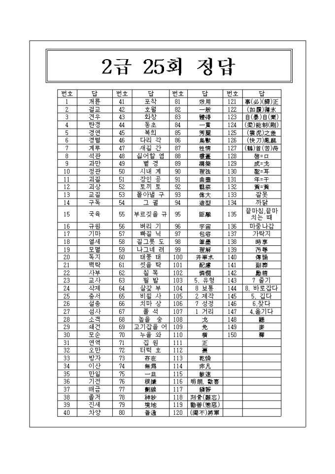 한자능력시험 기출문제 第25回 漢字能力檢定試驗 2級