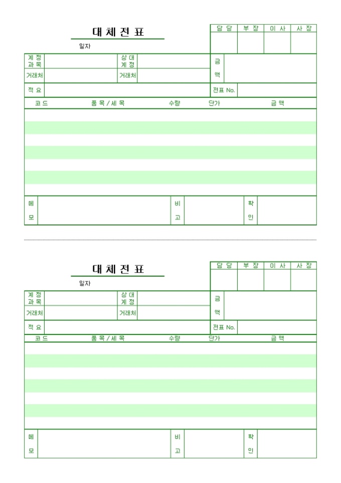대체전표 양식지