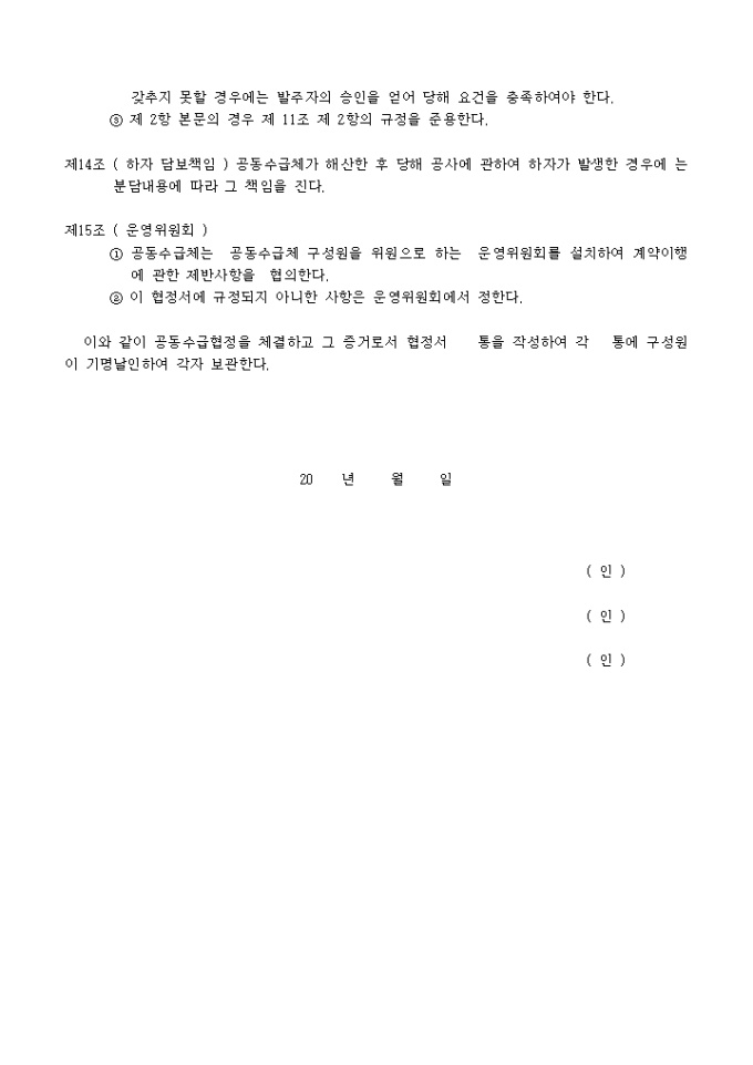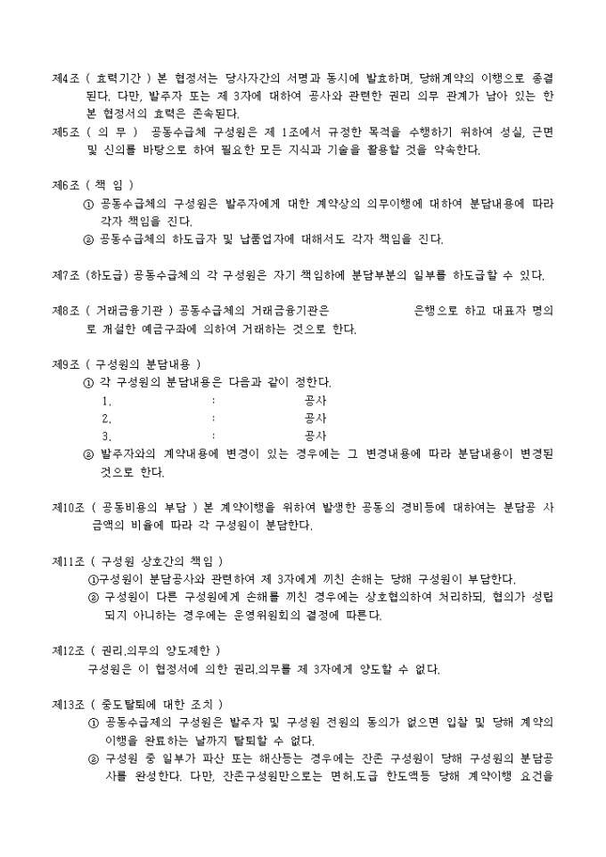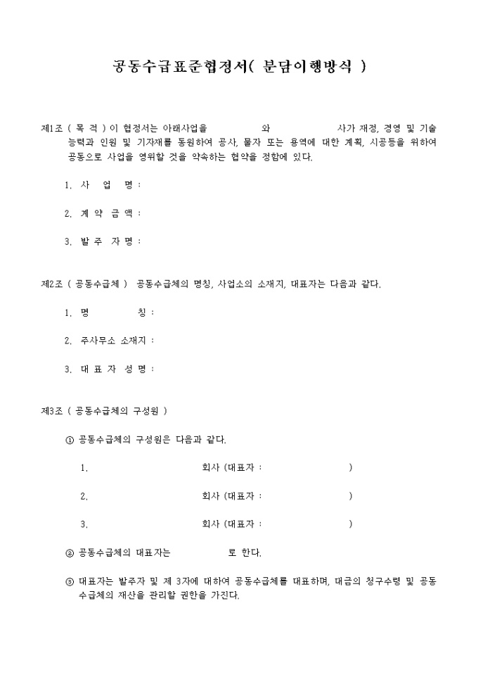 9,000원/월공동수급표준협정서(분담이행방식)에 관한 양식입니다.