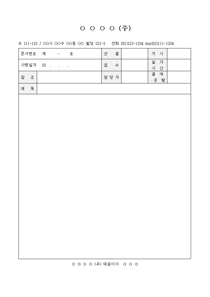 공문양식-일반양식입니다 문서번호 : 제 - 호 시행일자 20 . . . 선 결 접 수 지 시 담 당 자 일자시간 결재공람 참 조 제 목
