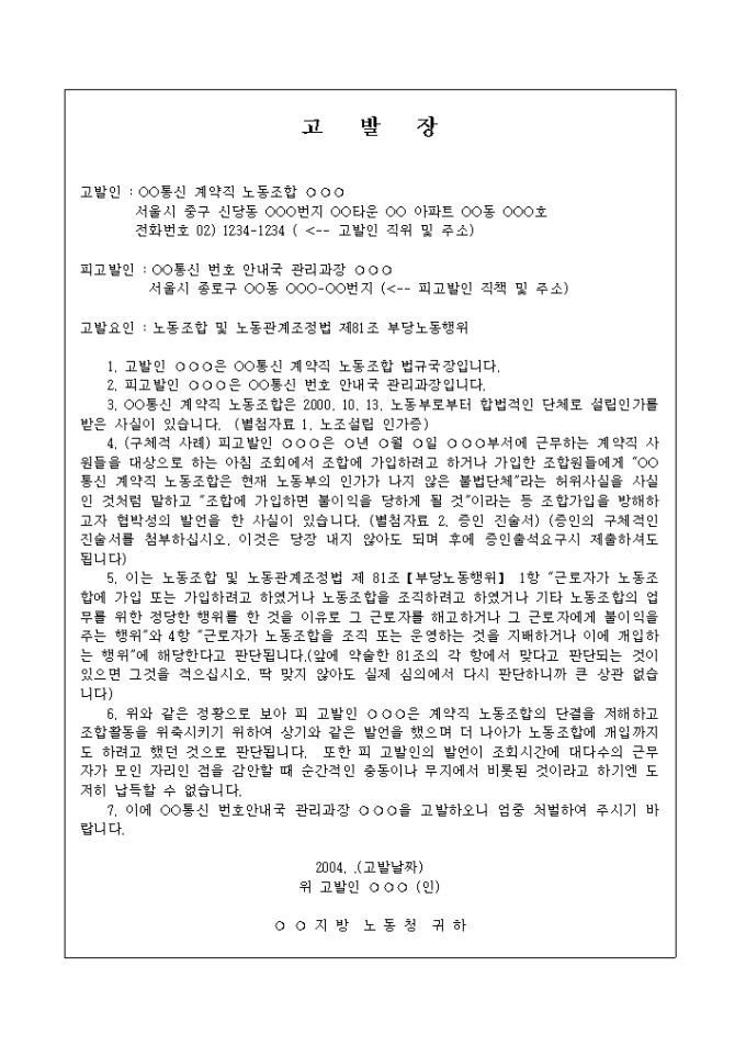 전화번호 02) 1234-1234 ( <-- 고발인 직위 및 주소)