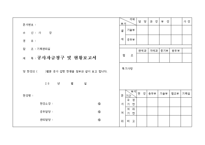 공사자금청구 및 현황서