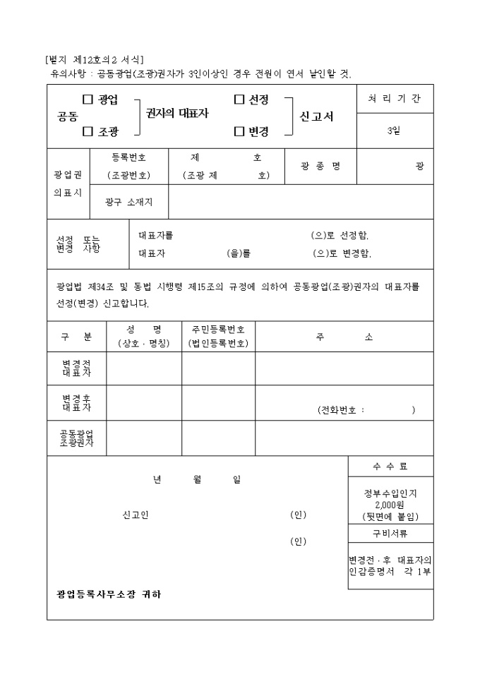 공동(광업, 조광)권자의대표자(선정, 변경)신고서