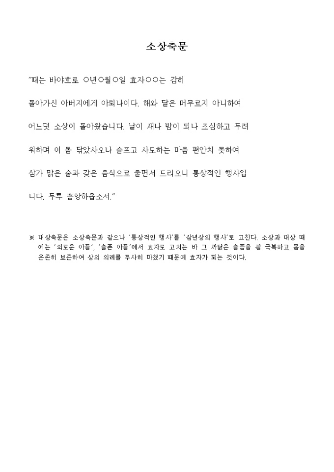 소상축문에 대한 한글제사축문(9) 양식입니다.