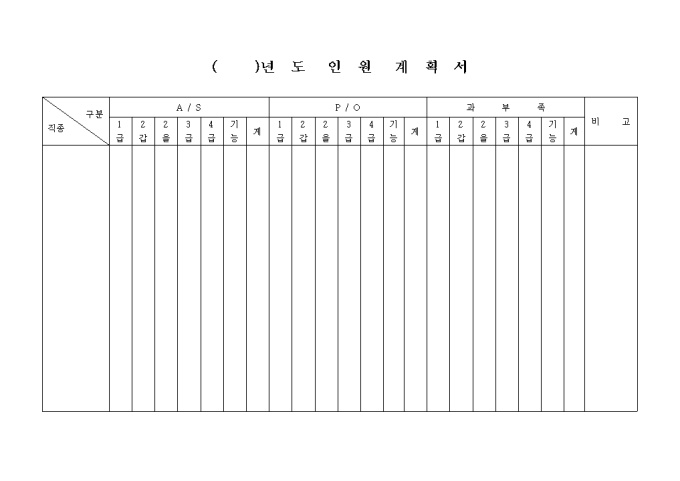 9,000원/월인원 계획서양식입니다. A/S, P/O , 과부족, 비고 등을 기재합니다.