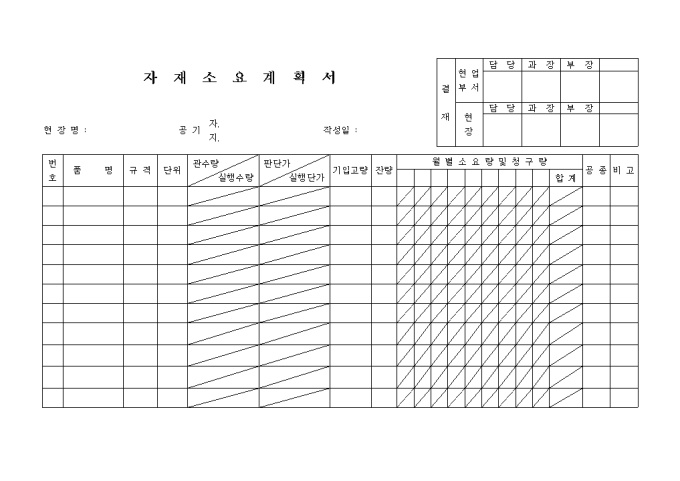 자재소요 계획서(현장용)