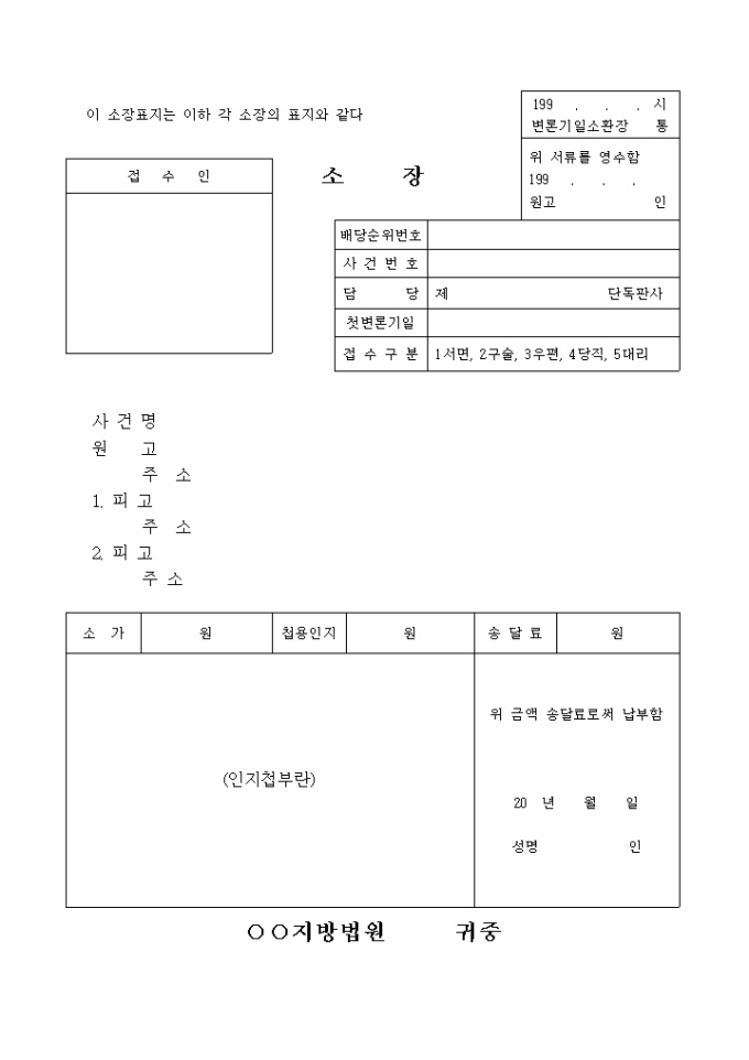 소액사건 소장 표지