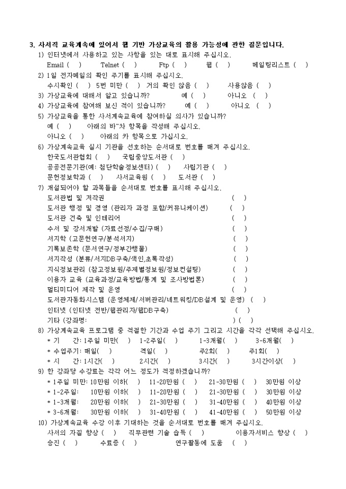 웹기반의 사서직 가상 계속교육프로그램에 관한 설문 조사