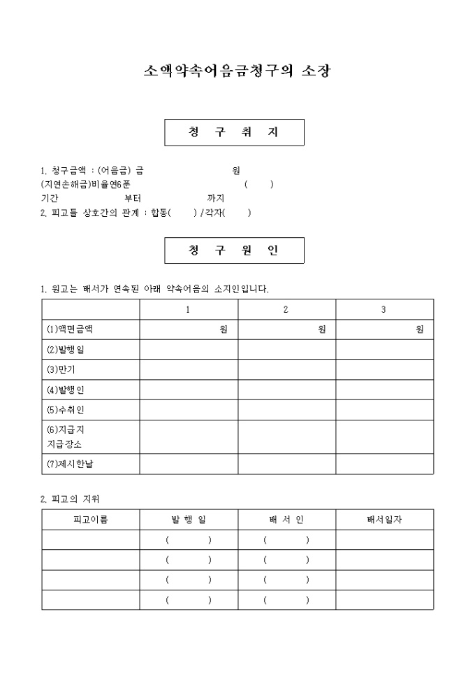 소액약속어음금청구의 소장