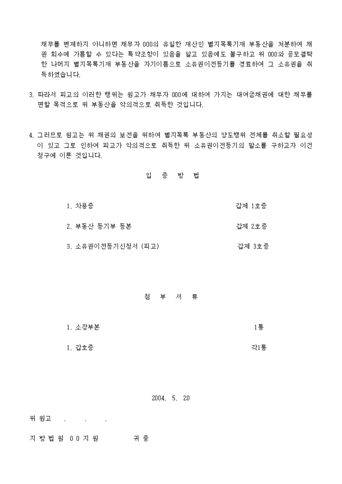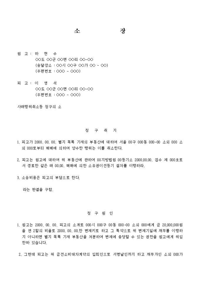 소장(사해행위취소등 청구의 소)