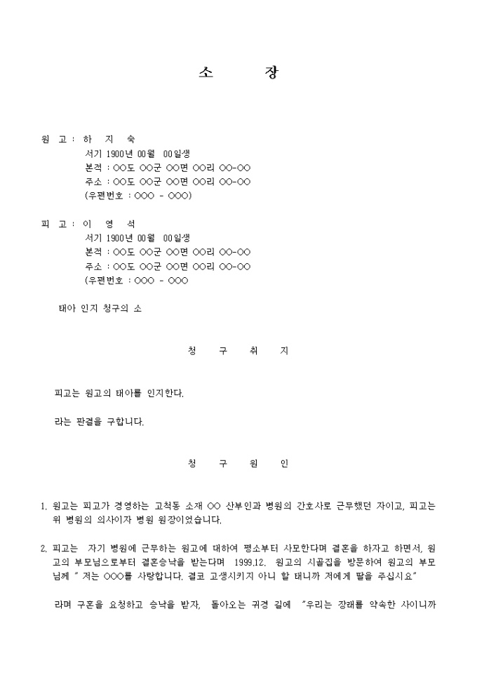 9,000원/월태아를 인지한다라는 판결을구하는 소장입니다.
