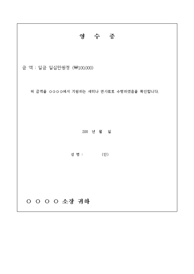 세미나 연사료를 수령할 때 이를 확인하기 위해 사용하는 양식입니다