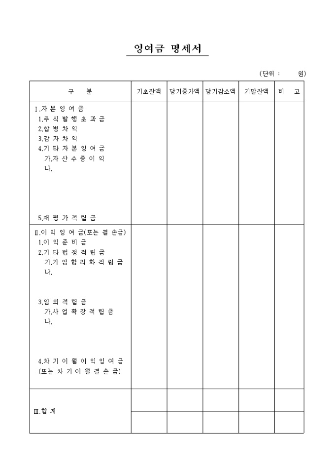 잉여금 명세서