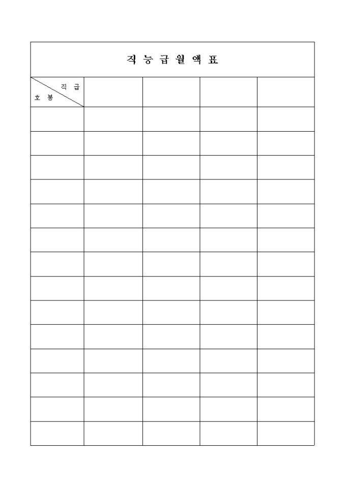 직급별 호봉내역을 기재하는 직능급 월액표양식입니다.