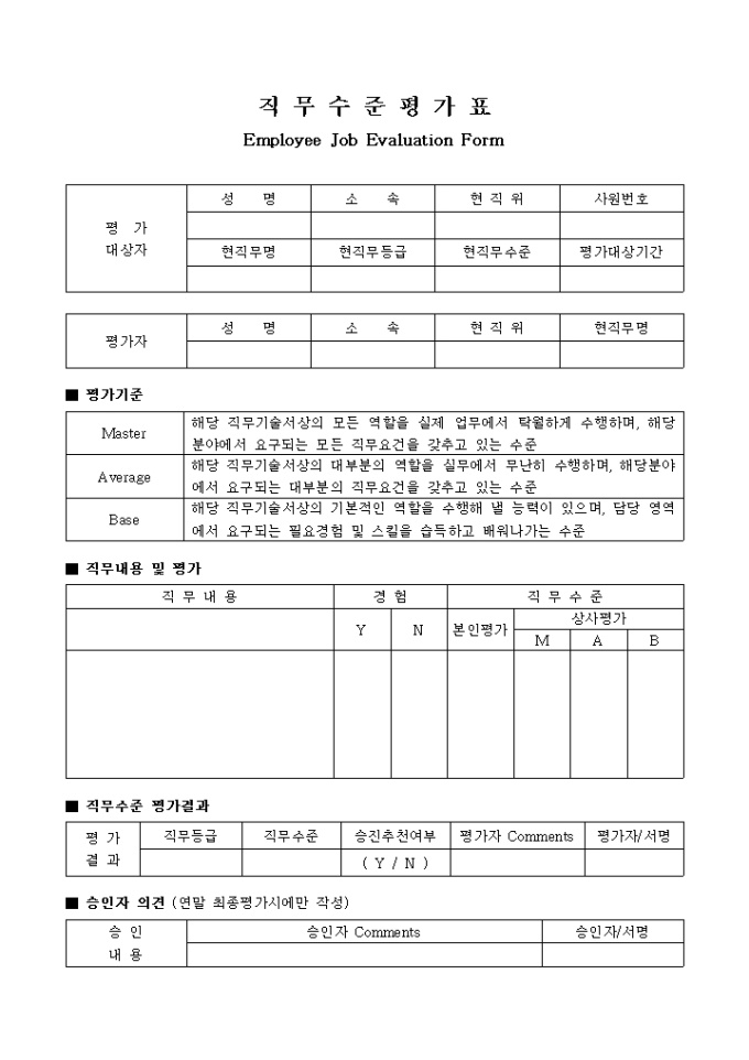 직무수준 평가표