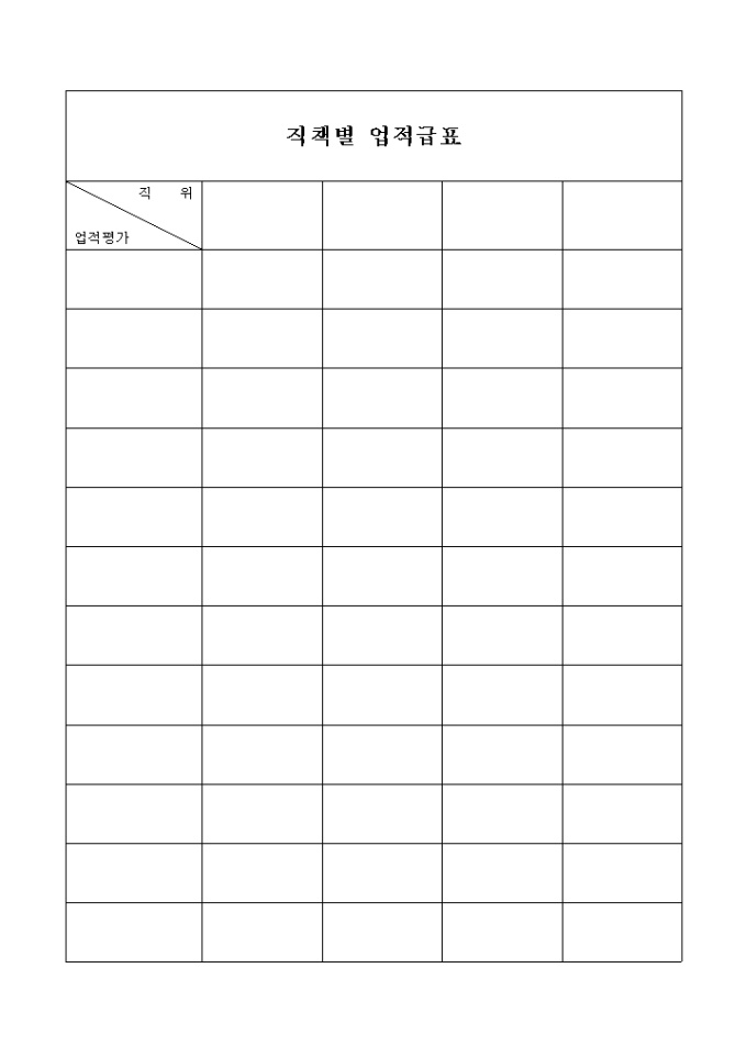 9,000원/월직책별 업적평가 자료서식입니다. 간략한 표양식만 있으니 내용은 기재하여 사용하세요